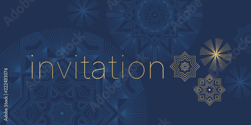 Vector poster template with gradient shapes on dark blue and place for text. Poster set in minimal style. Beautiful geometric gradients. A4 size. Ideal for banner, cover, invitation.