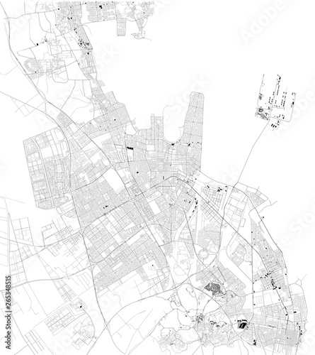 Satellite map of Dammam. It is the capital of the Eastern Province of Saudi Arabia. Map of streets and buildings of the town center. Asia