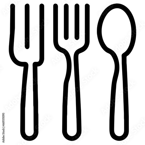 A fork is drawn in black on a white background. The fork is long and thin, with three prongs. The image is simple and minimalistic, with no other elements or distractions