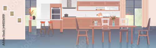 modern kitchen interior empty no people dinning room with furniture horizontal vector illustration