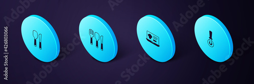 Set Isometric Pizza knife, Online ordering and delivery, Fork, spoon and Knife icon. Vector