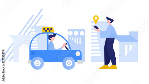 Taxi Ordering Mobile Application, Service Concept Design - Vector Illustration
