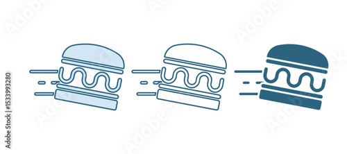 Blue Online ordering and burger delivery icon isolated on white background. Vector