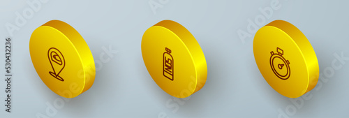 Set Isometric line Racing helmet, Nitrous oxide and Stopwatch icon. Vector