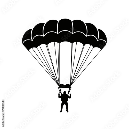 Dynamic parachute descent illustration with silhouette of skydiver falling safely vector art silhouette