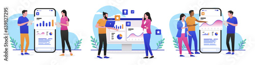 Business intelligence reporting, data visualization concept vector illustration. Analysts presenting insights via interactive dashboards