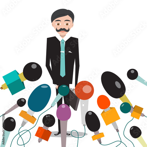 Businessman or Politician with Microphones on White Background. Vector Cartoon.