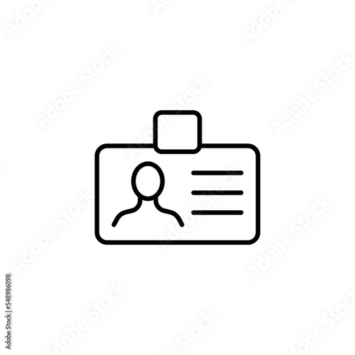 Name tag line icon. identity card, personal card, participant, employee, conference, service area. Identification concept. Vector black line icon on a white background