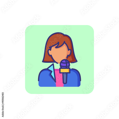 Journalist line icon. Woman with microphone, reporter, correspondent. Occupation concept. Can be used for topics like news agency, report, broadcast, press conference