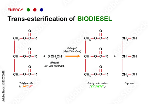 Alternative energy diagram show transesterification reaction from oil to biodiesel in fuel production