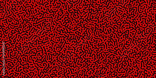 Turing reaction diffusion monochrome seamless pattern with chaotic motion. Natural background with organic structures. Vector illustration of chemical morphogenesis concept. Curvy doodle labyrinth