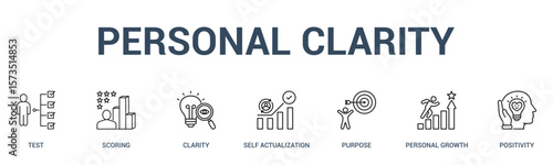 Personal Growth anner web icon set vector illustration concept with icon of focus, self actualization, perseverance, accountability, ambition, learning, empathy