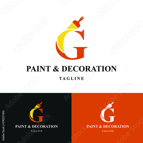 Letter G Initial with paint brush icon for paint and decoration business logo concept vector template
