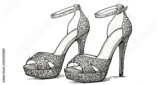 Set of women's shoe silhouettes including high heels, wedges, and platform sandals