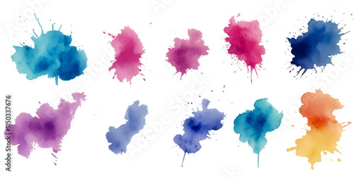 Set of colorful paint splatter abstract vector texture background. Set of abstract watercolor water splash background.