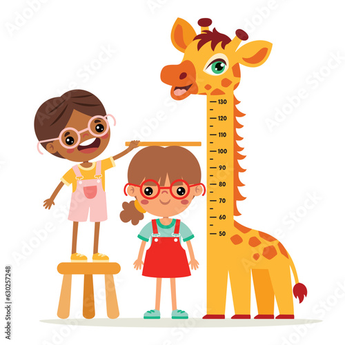 Cartoon children watering plants, boy with small seedling, girl with taller plant, playful gardening, eco-friendly learning, childhood nature care illustration