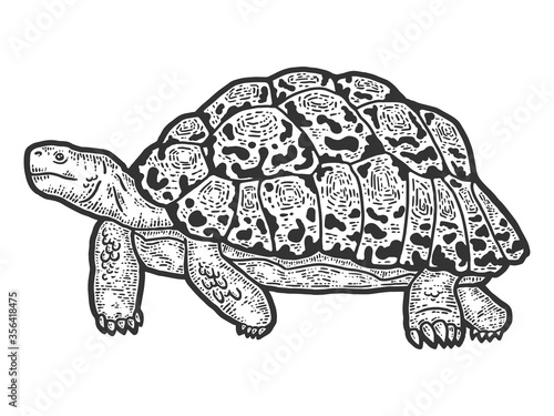 Animal leopard tortoise. Sketch scratch board imitation. Black and white.