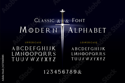Elegant Font Uppercase Lowercase and Number. Classic Lettering Minimal Fashion Designs. Typography modern serif fonts regular decorative vintage concept. vector illustration