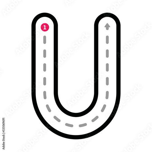 Tracing Alphabet uppercase capital letter U prewriting dotted line element for kindergarten, preschool and Montessori school kids worksheet for handwriting practice activity.