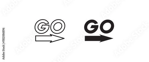 Word Go with arrow icon. vector lettering on white background. motivation monogram, Initial letter GO, uppercase logo editable stroke
