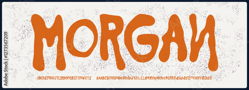 Condensed grunge vector font with soft texture. Alphabet font with uppercase and number