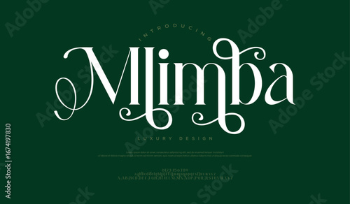Mlimba Luxury wedding alphabet letters font with tails. Minimal modern urban fonts for logo, brand etc. Typography typeface uppercase lowercase and number. vector illustration