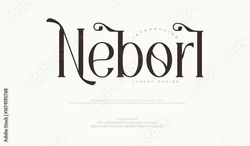 Nebrol Luxury alphabet letters font. Minimal modern urban fonts for logo, brand etc. Typography typeface uppercase lowercase and number. vector illustration
