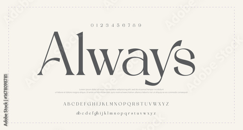 Elegant alphabet letters serif font and number. Lettering Minimalist Fashion. Typography fonts regular uppercase, lowercase and numbers.
