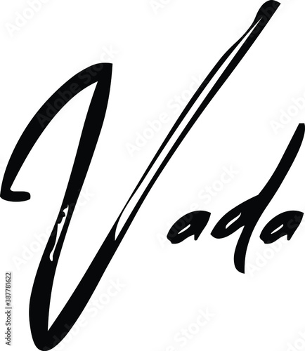 Vada-Female Name Modern Cursive Brush Calligraphy on White Background