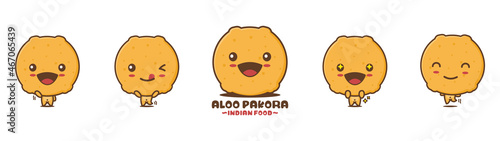 cute aloo pakora cartoon mascot. indian food vector illustration, with different facial expressions and poses