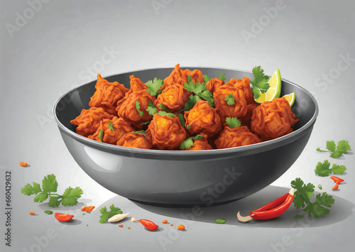 Pakora or Bhajia Indian vegetable fritters crisp fried snack street food