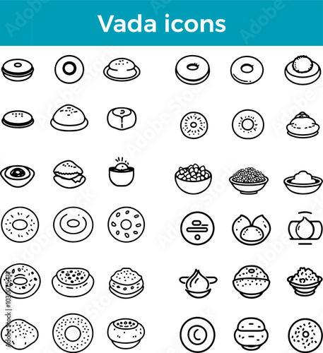 Vada icons line Indian fried snack lentil doughnut vector traditional food savory cuisine illustration set