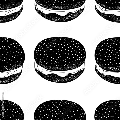 cartoon vegetarian burger Indian traditional street foods vada pav seamless pattern template idea