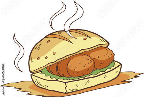 Indian street food Vada Pav vector Illustration, Indulge in the flavors of Mumbai's streets with our Vada Pav vector illustration. Perfect for menus, posters, or culinary designs and more