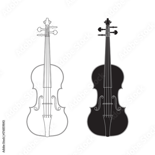 Violin, cello (violoncello) and double bass. Colored and black & white versions. High quality details.