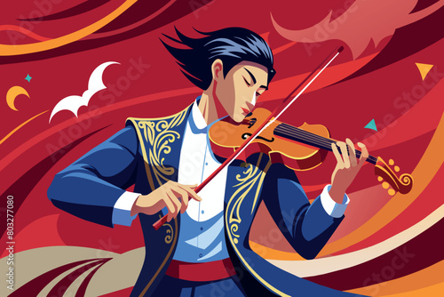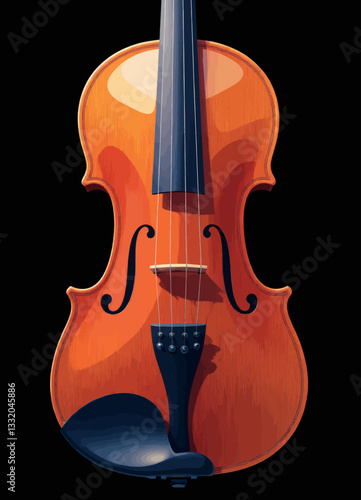 The illustration features a vibrant violin with a polished finish. It highlights the instruments curves and strings presenting it as a symbol of musical artistry and passion.
