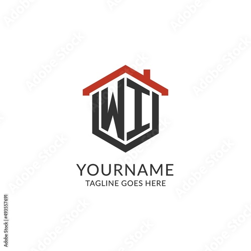 Initial logo WI monogram with home roof hexagon shape design, simple and minimal real estate logo design