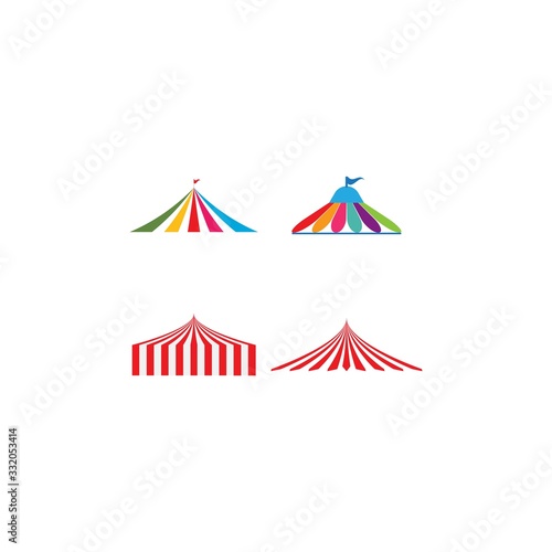 Circus logo or icon with tent. Carnival, fair show sign. Vintage design element. Vector illustration.