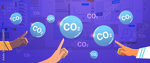 Carbon co2  level emission. Level of the carbon dioxide emits. Reduce CO2 level.  Zero Emissions. Vector illustration.