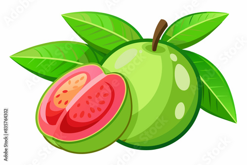Vector illustration, Tropical fruit Guava, whole fruit and halved, isolated on white.