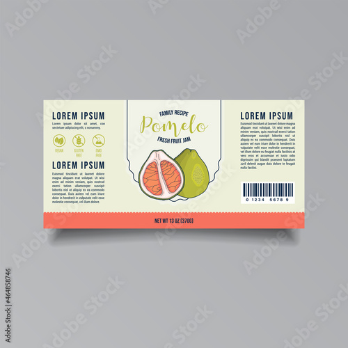 Pomelo jam label template. Modern vector packaging design layout. Isolated