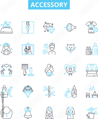 Accessory vector line icons set. Finery, trinkets, knick-knacks, apparel, ornaments, trimmings, paraphernalia illustration outline concept symbols and signs