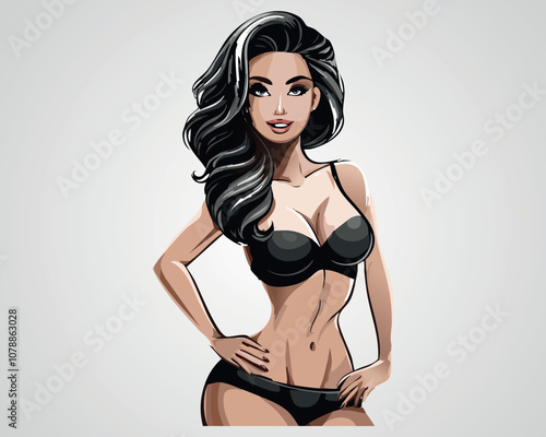 Young seductive woman. Beautiful girl in lingerie. Female slender body, silhouette, sketch. Hand drawn illustration, vector