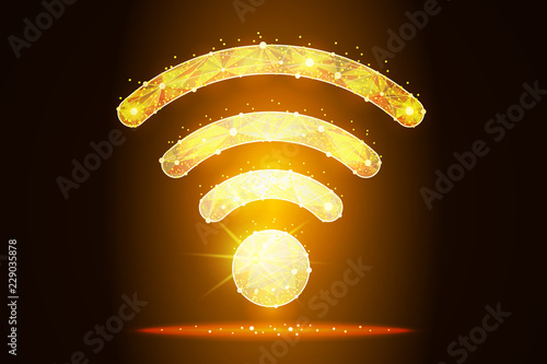 Wi-Fi Icon abstract design Created in the form of stars and constellations on the background of space,isolated from low poly wireframe on .