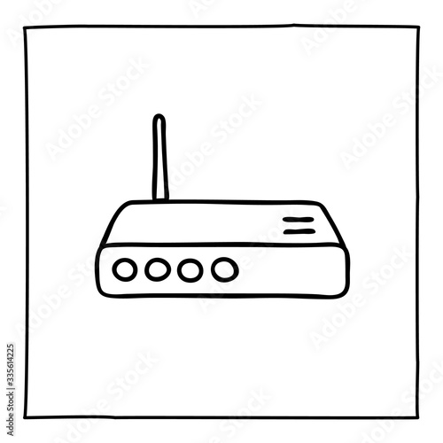 Doodle modem router icon or logo, hand drawn with thin black line.
