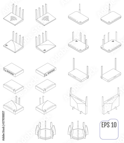 Isometric set of routers. Isometric realistic vector icons isolated on white background.