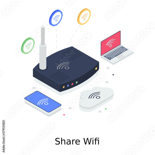 a flat wifi router icon with a cloud background, An internet router with a backdrop of a cloud.