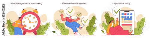 Vector illustration multi task manager girl set