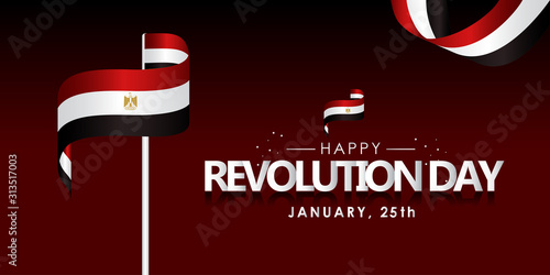 Egypt Revolution Day With Ribbon and Flag Vector For Banner Print