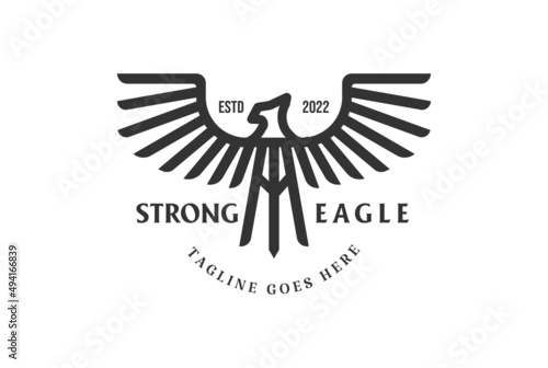 Golden American Eagle Hawk Falcon Phoenix Bird Badge Emblem Logo Design Vector